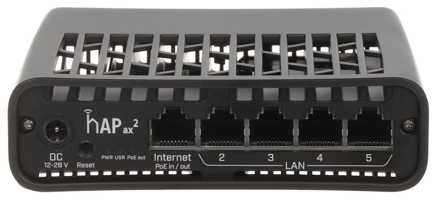| Wybrane cechy: | Wbudowany 5-portowy switch Obsługa Wi-Fi 6 - standard oferujący wyższe prędkości, lepszą wydajność w środowiskach o dużym natężeniu ruchu 2x2 MIMO / Dual-chain @ 2.4 GHz, 5 GHz MU-MIMO - funkcja transmisji wieloantenowej, pozwalająca na zwiększenie przepustowości i niezawodności połączenia z klientem sieci Beamforming (TxBF) - technologia pozwalająca ukształtować wiązkę fal radiowych w celu polepszenia jakości połączenia z urządzeniami klienckimi znajdującymi się dalej od źródła sygnału IPsec Passive PoE - 1 x Wejście / Wyjście ( port Internet/PoE IN/OUT ) Możliwość zasilania za pośrednictwem Passive PoE przez port eth1/Poe OUT - 0.6 A, 16.8 W (max) Przycisk Mode Przycisk RESET |