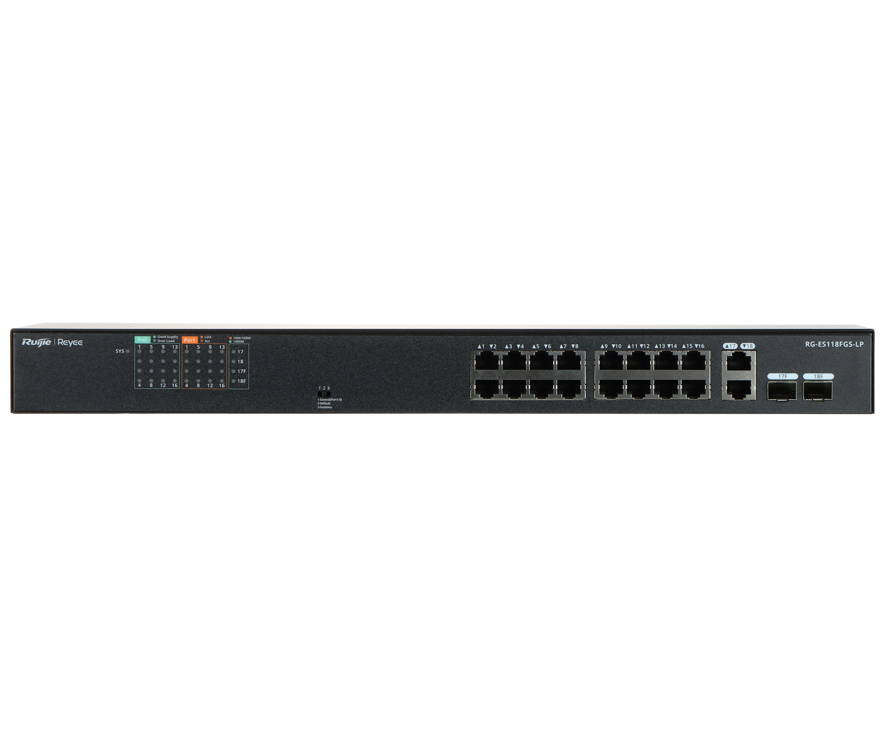 Dzięki niezawodności i zapewnieniu wysokiej jakości transmisji, 16-portowy przełącznik PoE RG-ES118FGS-LP stanowi idealne rozwiązanie do zastosowań w instalacjach CCTV IP16 portów obsługuje funkcję Power over Ethernet (PoE)