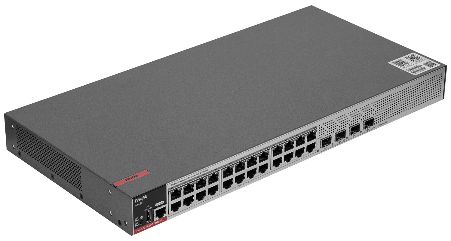 Dzięki niezawodności i zapewnieniu wysokiej jakości transmisji, 24-portowy przełącznik PoE RG-S2915-24GT4MS-P-L stanowi idealne rozwiązanie do zastosowań w instalacjach CCTV IP24 porty obsługują funkcję Power over Ethernet (PoE)
