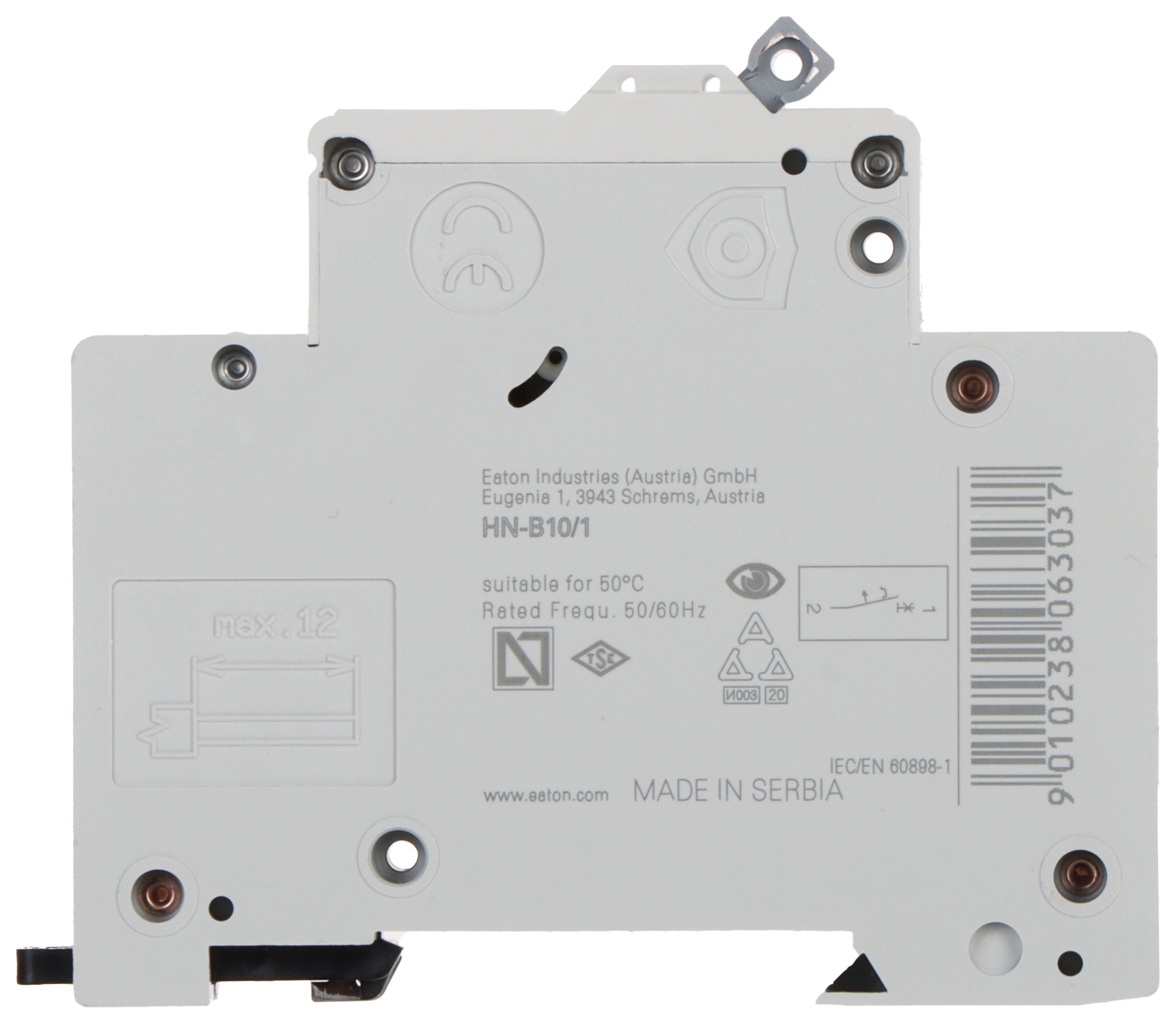Wyłącznik nadprądowy o charakterystyce typu B i prądzie znamionowym 10AWyłącznik HN-B10/1 jest przewidziany do montażu na szynie DIN TS-35