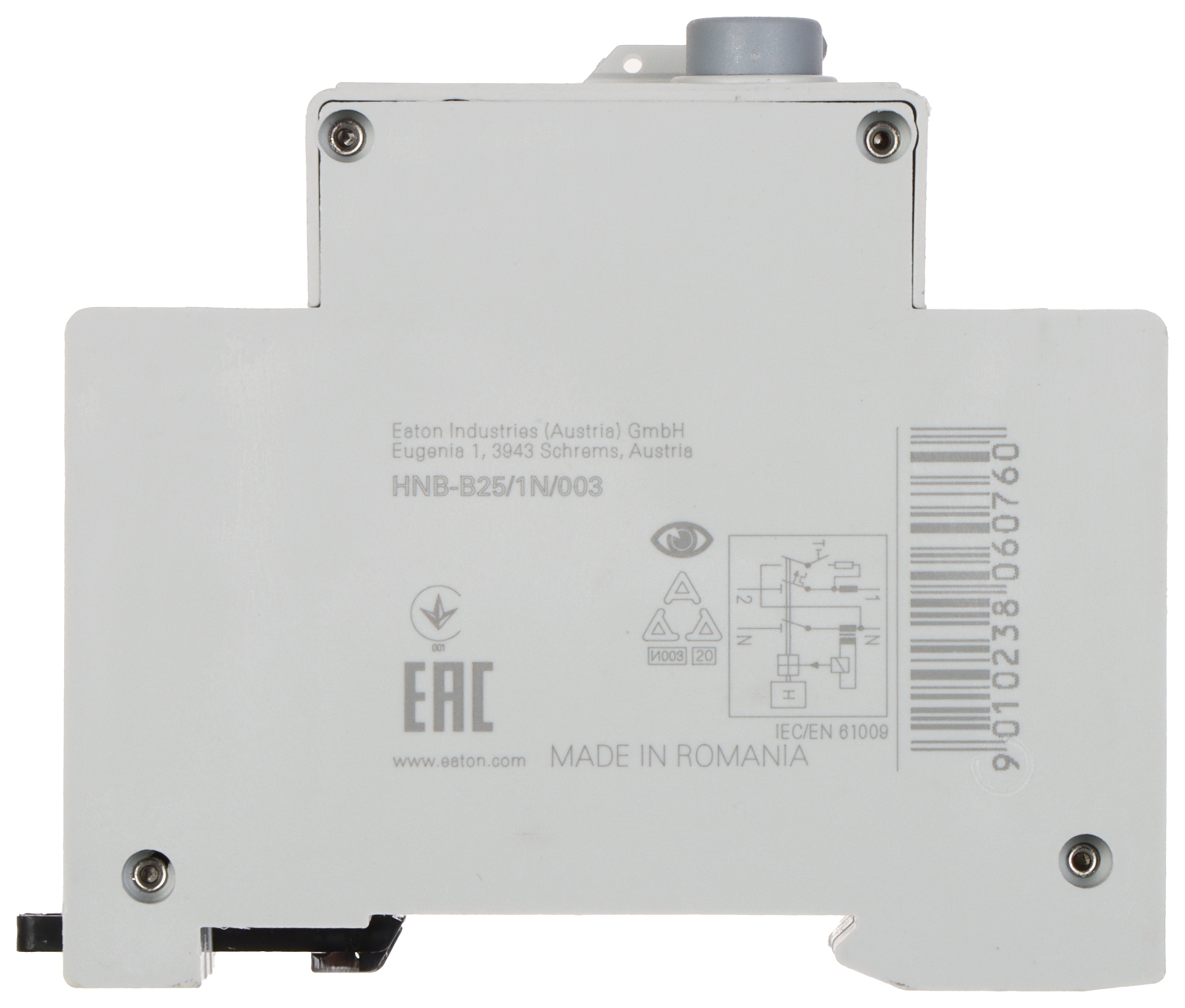 Wyłącznik różnicowo-nadprądowy typu AC o charakterystyce B i znamionowym prądzie różnicowym IΔn = 30mAWyłącznik HNB-B25/1N/003 jest przewidziany do montażu na szynie DIN TS-35