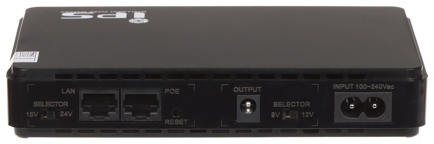 Zasilacz UPS posiada wbudowany interfejs PoE 15V/24V zapewniający transmisję danych oraz zasilanie za pomocą jednego złącza RJ-45